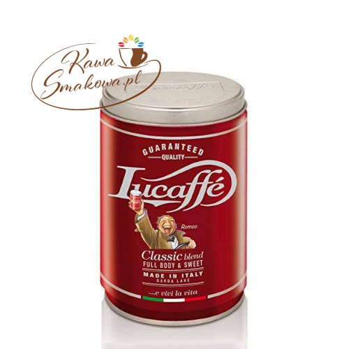 Lucaffe Classic jest wyjątkową propozycją dla osób ceniących sobie smak doskonałego włoskiego espresso. Gwarantuje to staranny dobór najlepszych ziaren pochodzących wyłącznie z najbardziej renomowanych plantacji oraz ich odpowiednie wypalenie. Lucaffe Classicjest kompozycją składającą się w 80% z najdorodniejszych odmian gatunku Arabica z niewielką domieszką szlachetnej Robusty. Charakteryzuje się niezwykle łagodnym smakiem, perfekcyjnym aromatem, a na filiżance espresso tworzy piękną cremę. Naturalna subtelność kawy Lucaffe Classic sprawia, iż z powodzeniem można z niej przyrządzić również wyborne cappucino oraz latte.