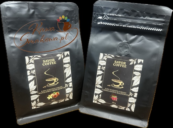 • Savor Coffee waniliowo-orzechowa 200g i Savor Coffee czekoladowo-malinowa 200g kawy ziarniste